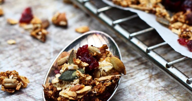 - Ibland eventuelle tranebær/rosiner hvis dette ønskes, når granolaen er helt afkølet.