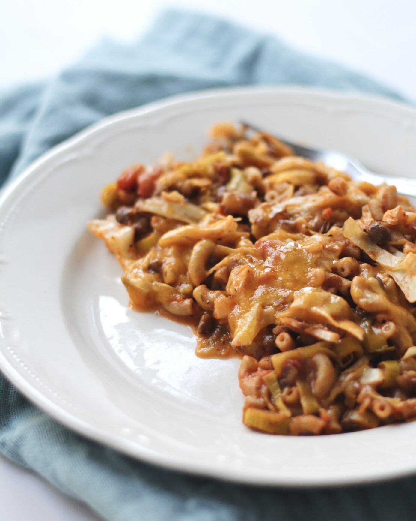 Chilibønner med grønt og fyldt pasta