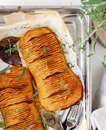 Lav glaseret butternutsquash som en skøn efterårs- og vinterret, eller brug den som en del af julemiddagen – den ligner jo en liiille smule en flæskesteg.