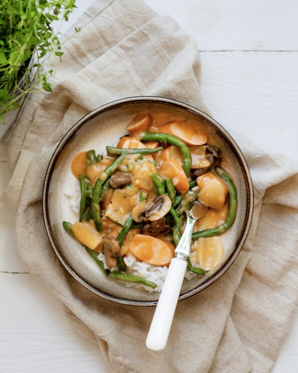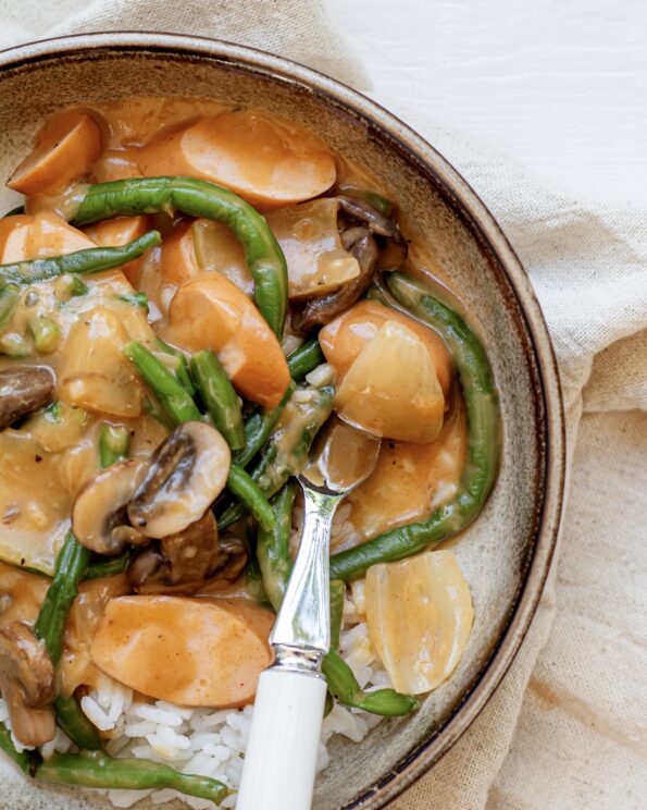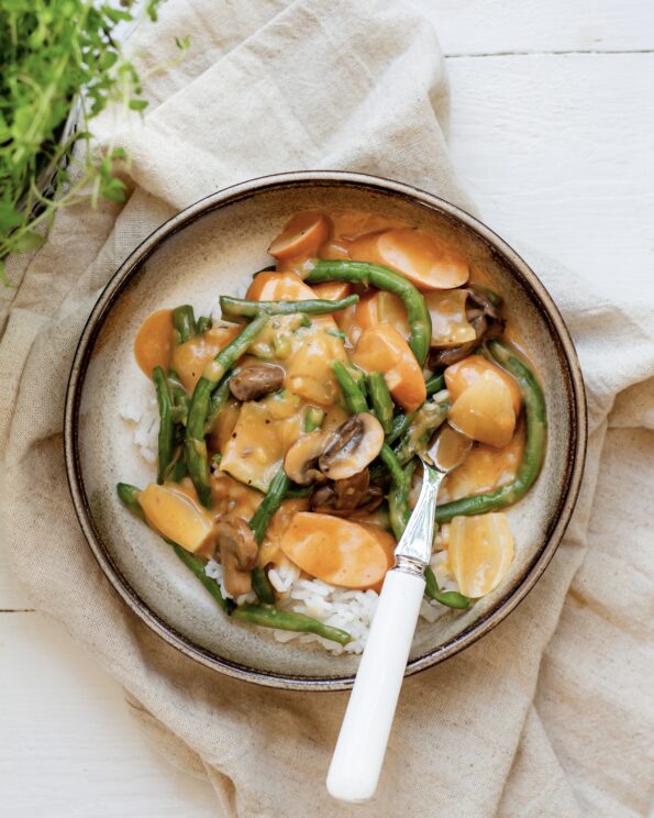 Efterår og vinter er de hyggelige retters tid. Du ved; Den varmende, venlige og sjælekrammende mad, der giver ro og glæde i sjæl og mund. Og Hyggegryde er netop det: Et varmt, rart og beroligende kram i form af et måltid. Tænd stearinlys, saml dine kære rundt om bordet og server Hyggegryde med ris og kærlighed.
