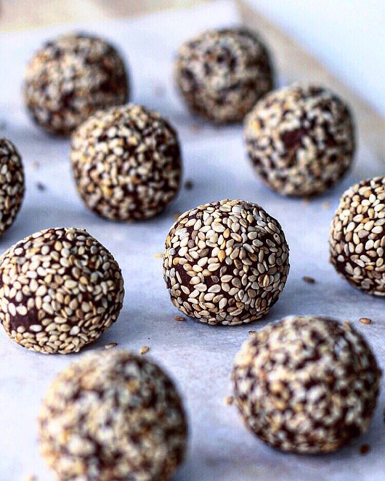 - Sesamfrø til at rulle i (eller nødder af ønsket type)