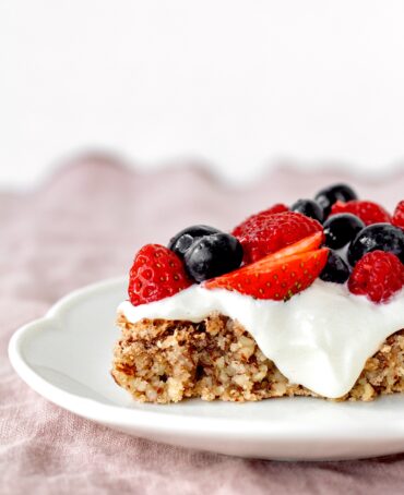 Mandelbunden er fuld af knas, cremen er sød og blød og bærrene skal være mange!