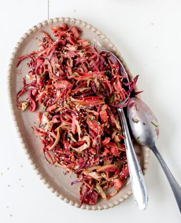 Rodfrugter i goma er født som en enkel salat, det vil sige som en tilbehørsret. M en ønsker du at bruge den som hovedret, kan du tilføje protein og kulhydrat, fx kogte grønne linser eller belugalinser samt fx kogt perlebyg eller havreris eller du kan servere lækkert brød til, som fx mit nemme madbrød med havregryn og hørfrø.