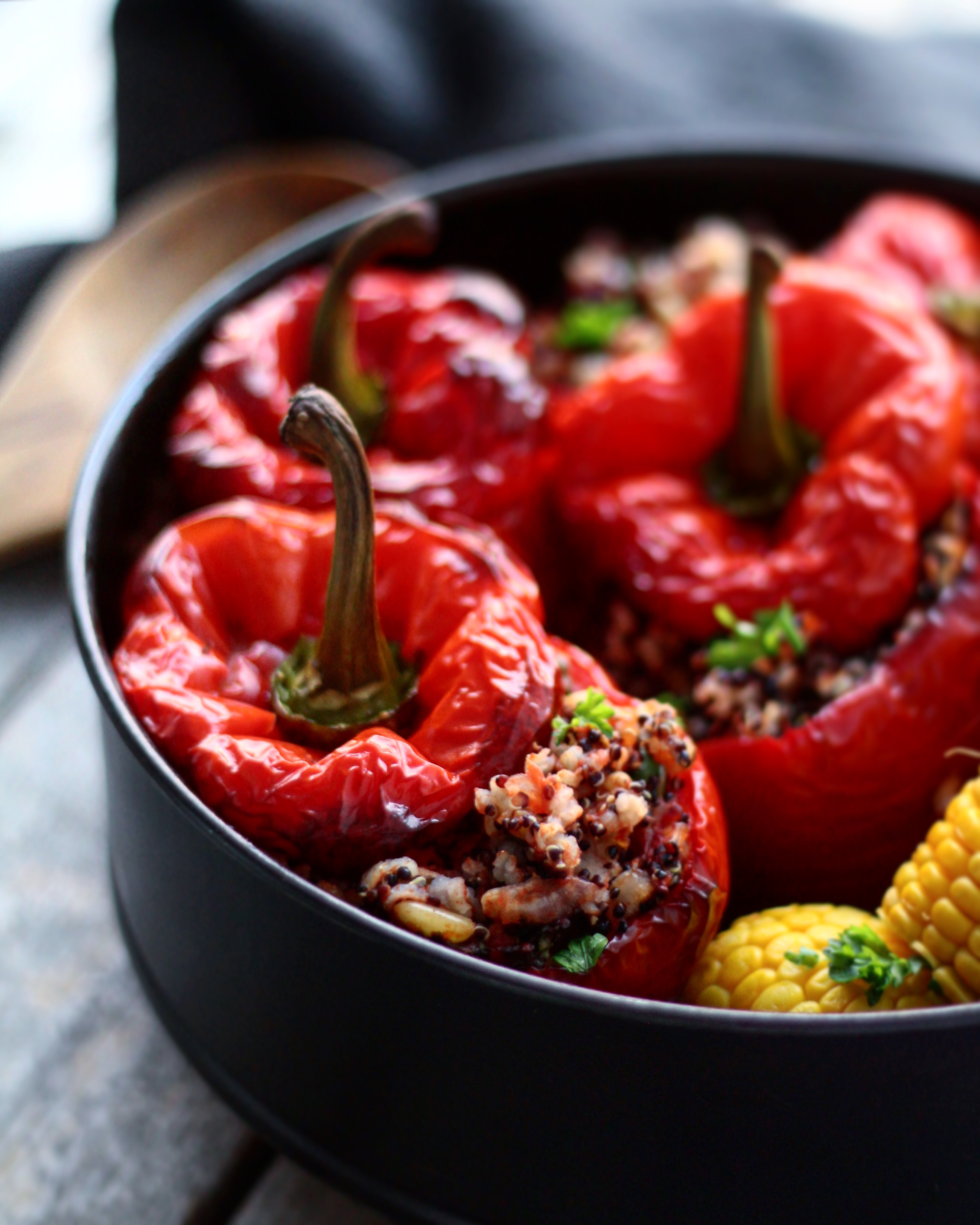 Jeg har fyldt mine yemistaer med grønsager, naturligvis, men også med fuldkornsris og quinoa for at gøre retten mere mættende og nærende. Og det er yemistaerne ikke blevet ringere af, skulle jeg hilse at sige!